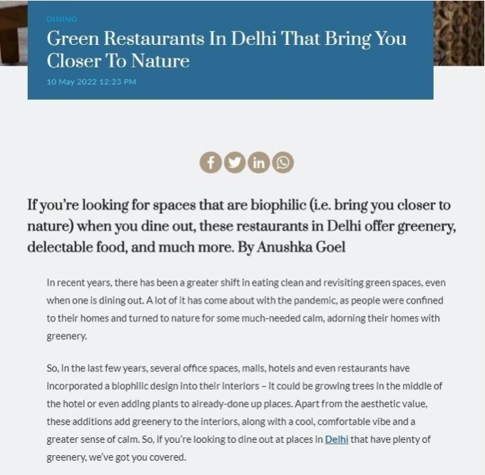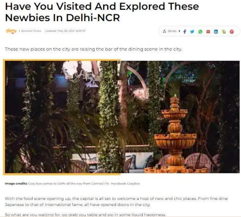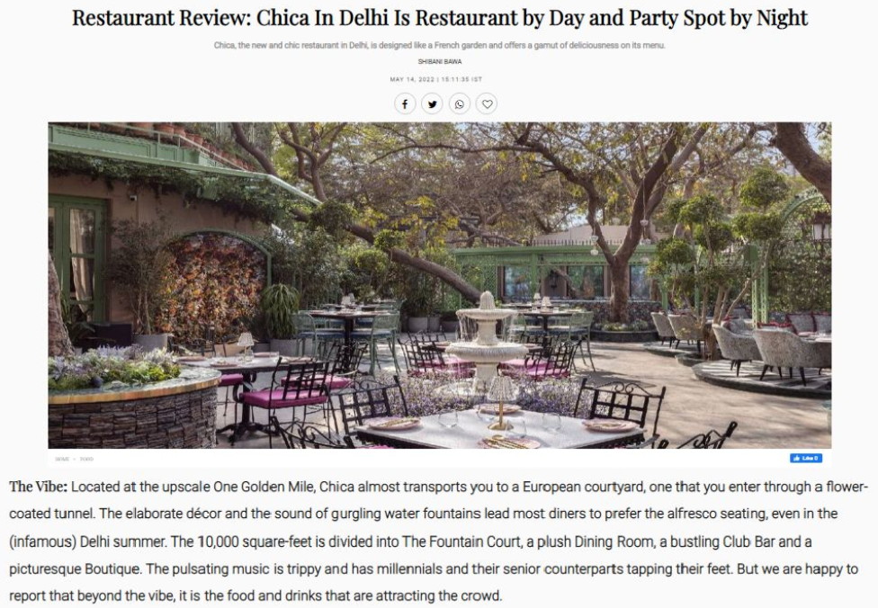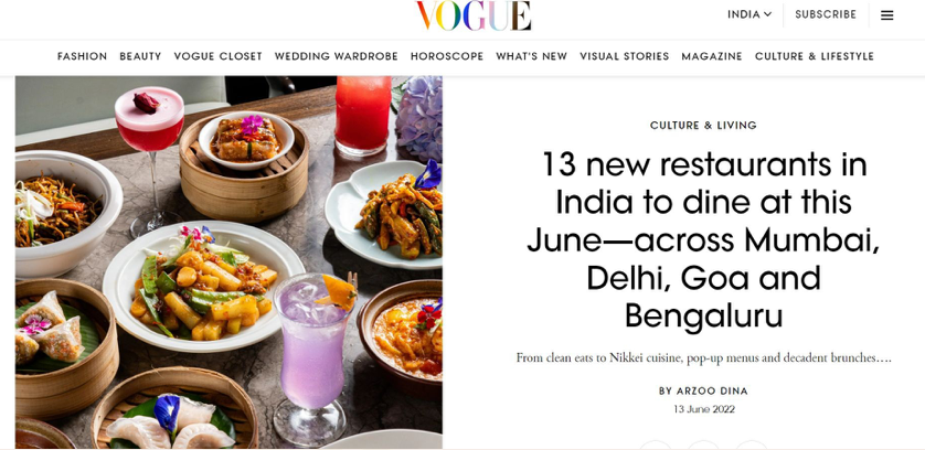 Celebrated across India’s top lifestyle and food platforms for design, ambience, cuisine, and experience.